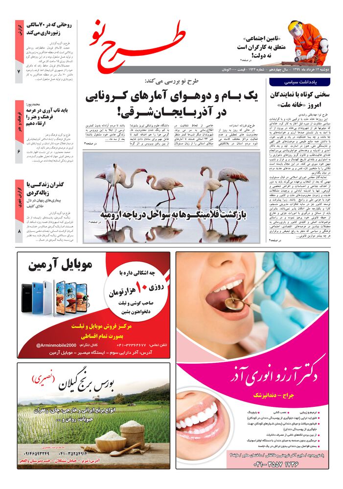 دوشنبه 12خرداد ماه - 1399سال چهاردهم -شماره - 1924قیمت 2000تومان