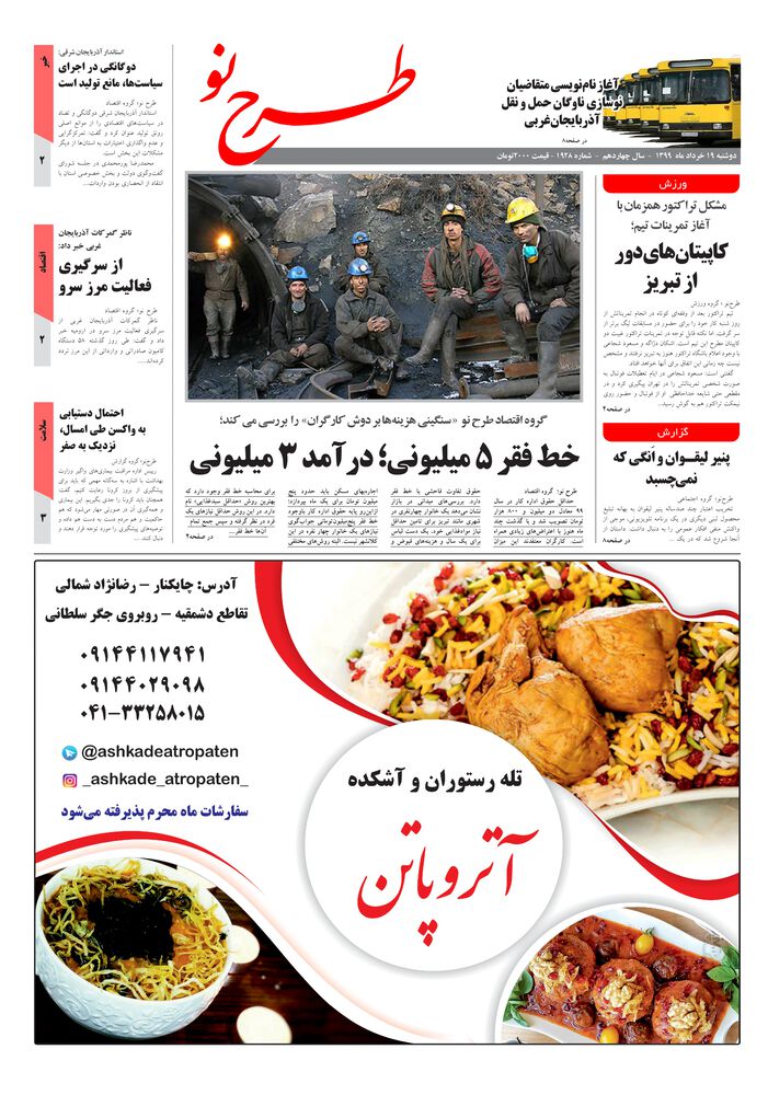 دوشنبه 19خرداد ماه - 1399سال چهاردهم -شماره - 1928قیمت 2000تومان