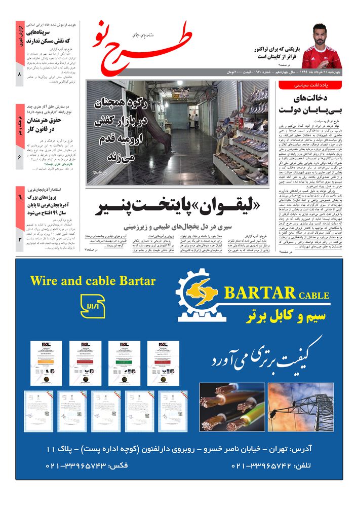چهارشنبه 21خرداد ماه - 1399سال چهاردهم -شماره - 1930قیمت 2000تومان