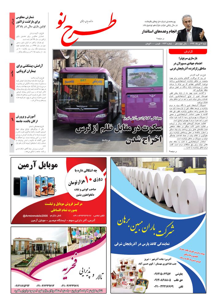 شنبه 7تیر ماه - 1399سال چهاردهم -شماره - 1943قیمت 2000تومان