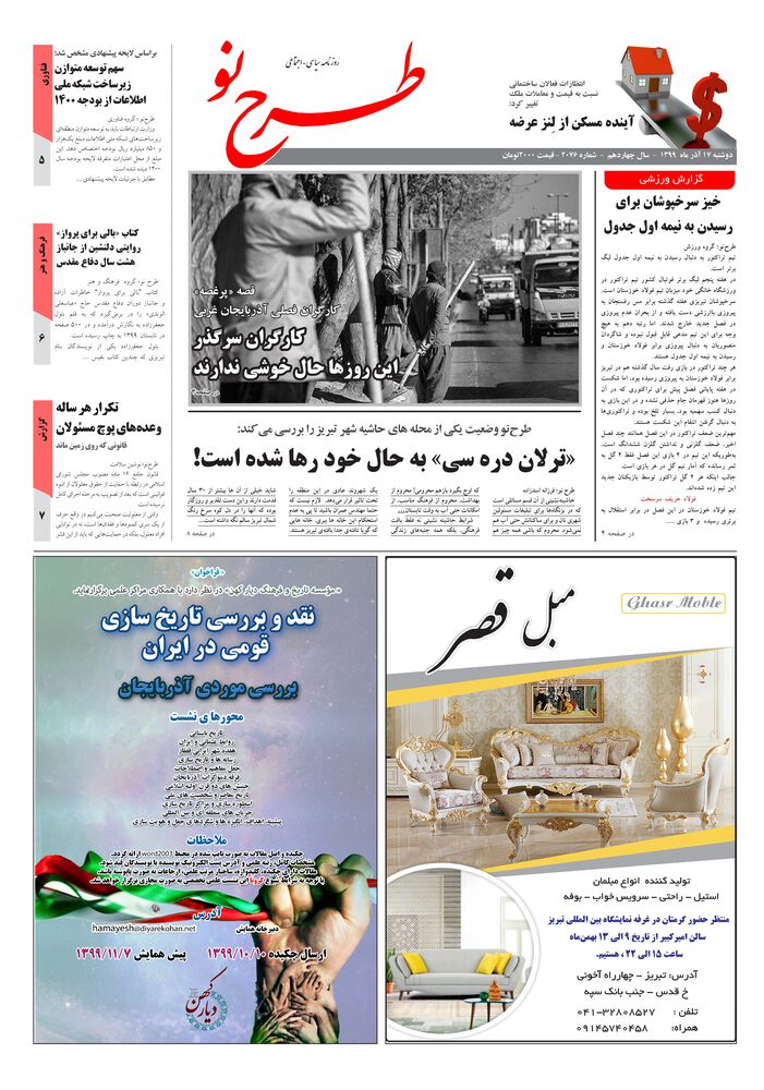 دوشنبه 17اذر ماه - 1399سال چهاردهم -شماره - 2076قیمت 2000تومان