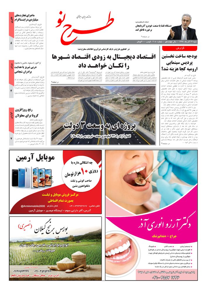 شنبه 22اذر ماه - 1399سال چهاردهم -شماره - 2080قیمت 2000تومان