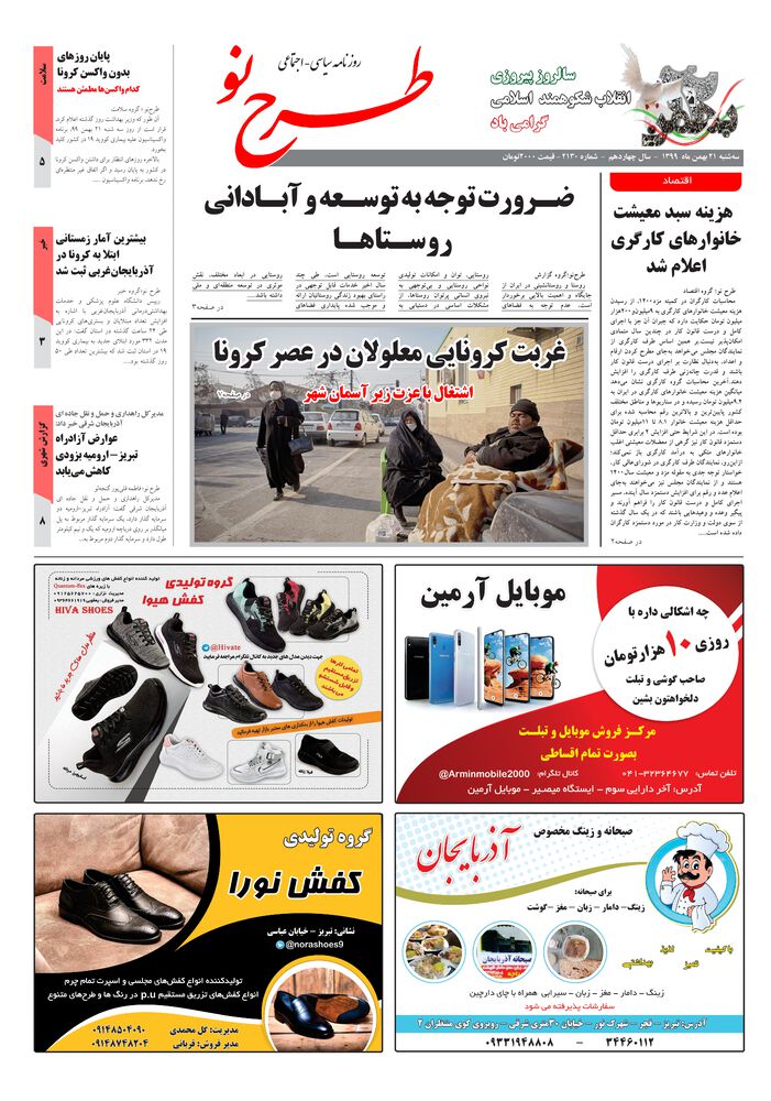 سه شنبه 21بهمن ماه - 1399سال چهاردهم -شماره - 2130قیمت 2000تومان