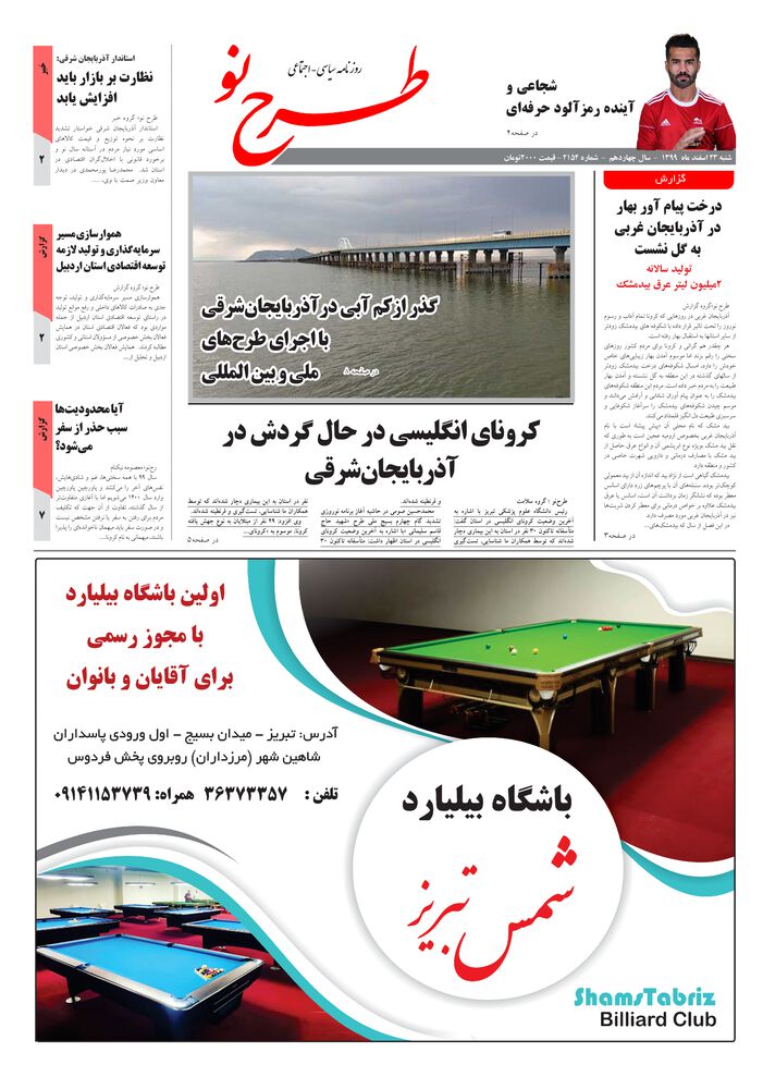 شنبه 23اسفند ماه - 1399سال چهاردهم -شماره - 2154قیمت 2000تومان